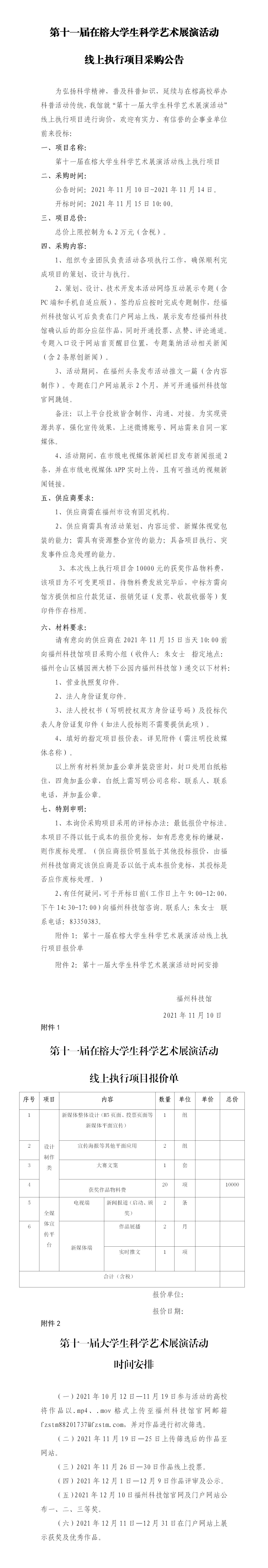 附件:第十一屆在榕大學生科學藝術(shù)展演活動線上執(zhí)行項目采購公告